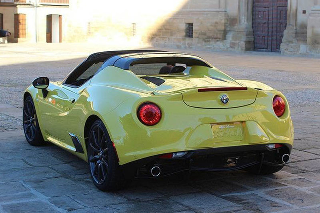 De meest opvallende wijziging is de nieuwe luchtinlaat voor het achterwiel, die de transmissie van extra koeling moet voorzien. Ook zijn de koplampen iets anders ingedeeld. De Spider krijgt dus nieuwe koplampen en niet de ‘kikkerogen’ van de coupé. Het uitlaatsysteem van de 4C Spider Preview, met in het midden geplaatste uitlaatpijpen, heeft het niet gehaald – al is het denkbaar dat de sportuitlaat alsnog op de optielijst verschijnt. De Spider heeft dezelfde 1,8 liter turbomotor als de Coupé, deze motor is goed voor 240 pk.